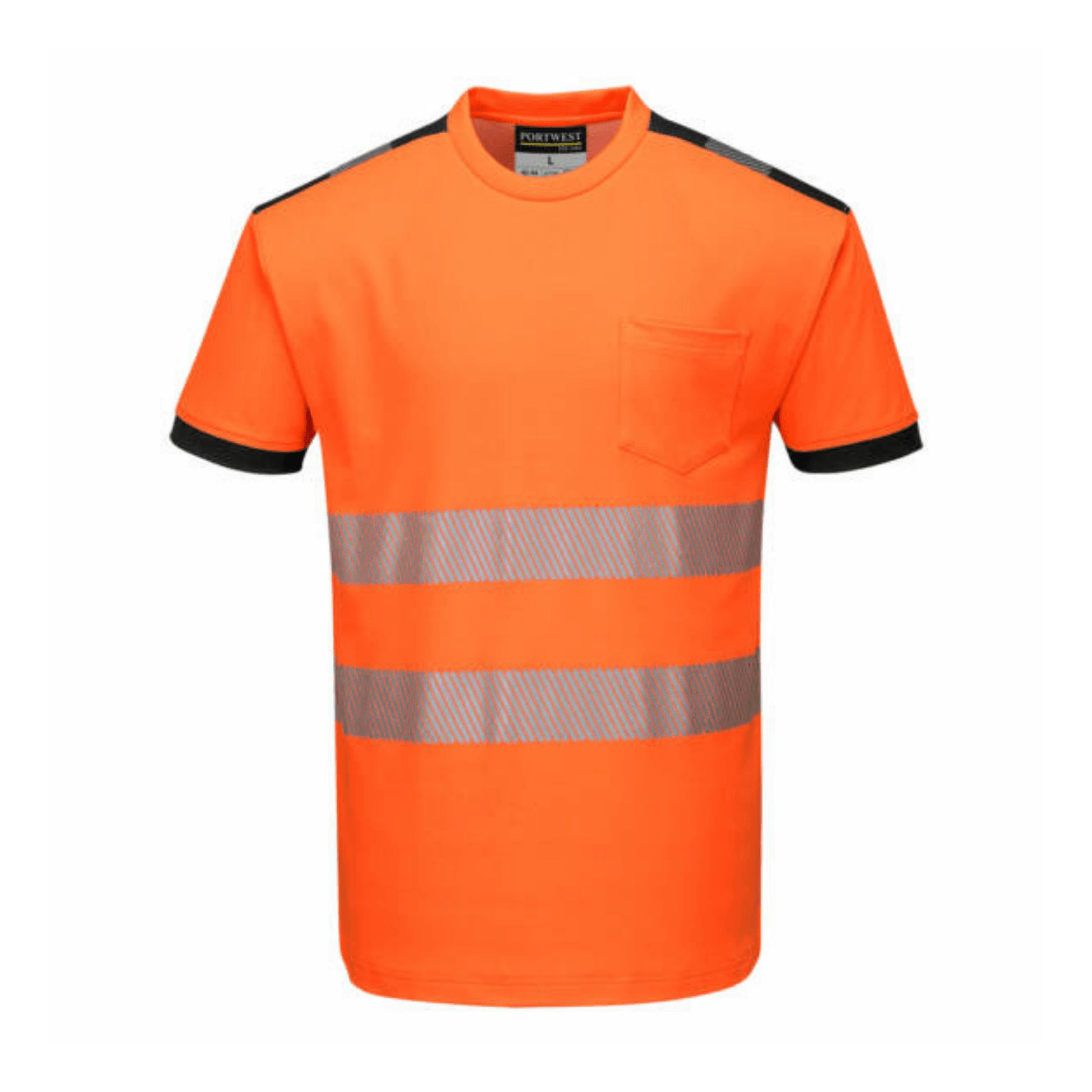 HiVis Tex Pro fényvisszaverő csíkokkal készült Cotton Comfort póló. Könnyű, lélegző anyagból. Mellzsebbel valamint szellőzőnyílások ellátva. Szegmentált fényvisszaverő szalaggal.